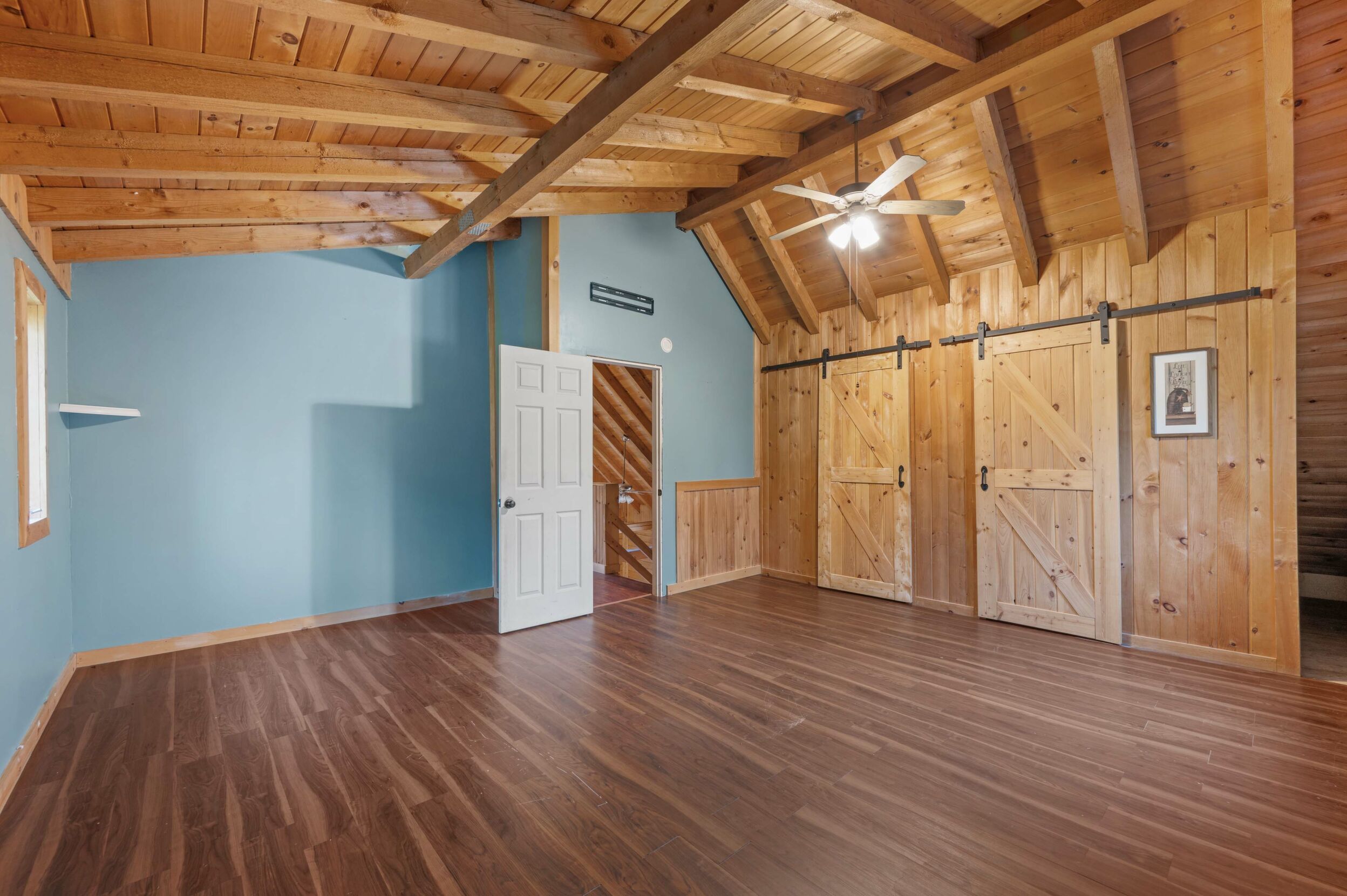 Step inside to find warm wood interiors, exposed beams, and a welcoming open-concept plan. On the main level, this home offers two spacious bedrooms and a full bath—ideal for family living or guests. Upstairs, you'll find an expansive open loft leading to the private primary suite, complete with a large walk-in closet—your personal retreat at the end of the day.